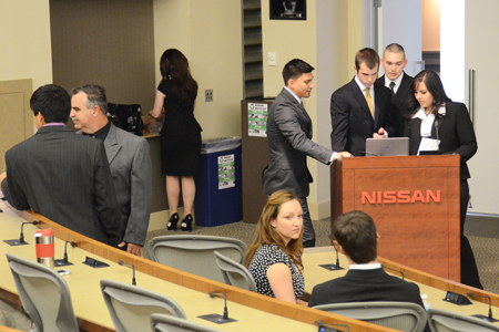 Two student teams in MTSU professor Jackie Gilbert’s Principles of Management-Experiential Learning class squared off this semester — not in an MTSU classroom, but in the very real-world environment of the Nissan Americas headquarters in Franklin, Tenn.
