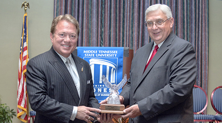 The Jennings A. Jones College of Business presents that award annually “to a businessman who has demonstrated the best of the spirit of America through significant contributions in government, education, and/or civic and charitable organizations.”