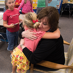 Krista Cashion, SR, Interdisciplinary Studies (K-6) reading to 1st graders at Homer Pittard Campus School, Emma Lakes on the right