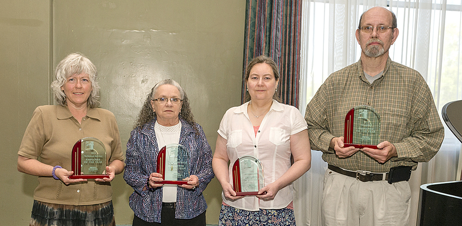 Honored were above, from left, Technical/Service Employee of the Year Tammy Hughes, Secretarial/Clerical Employee of the Year Irma Mae Melton, Administrative Employee of the Year Samantha Cantrell and Classified Employee of the Year Jason Pankey.