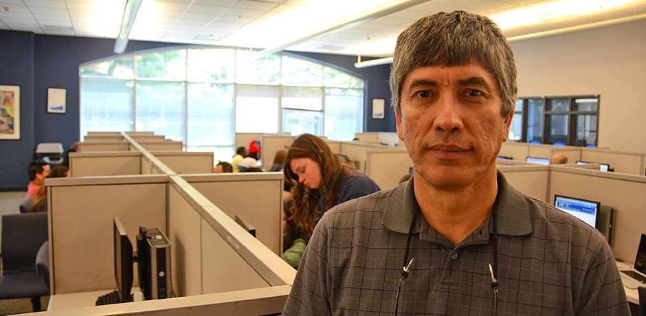 Carlos Coronel, director of the Jones College of Business University Computer Lab, is shown inside the lab before renovations began last month. The lab is closed this summer for renovations and will reopen by fall semester. (MTSU photos by News and Media Relations)