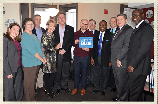 President Sidney A. McPhee recently hosted a reception for Washington, D.C.–area MTSU alums at Café Berlin. Among those pictured here are (3rd from left) General William Phillips, U.S. Army; (8th from left) McPhee; (9th from left) former congressman Bart Gordon; (10th from left) Rickey E. Smith; and (11th from left) Ken Strickland, NBC News Washington bureau chief.