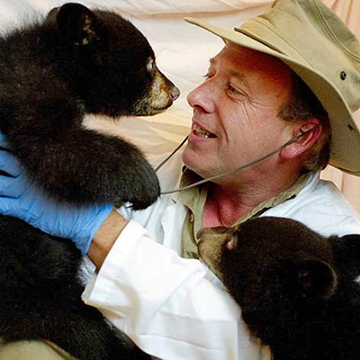 “Safari Greg” Carter enjoys the company of two baby bears who are being nurtured at the Austin Zoo and Animal Sanctuary in Austin, Texas. (Photo submitted)