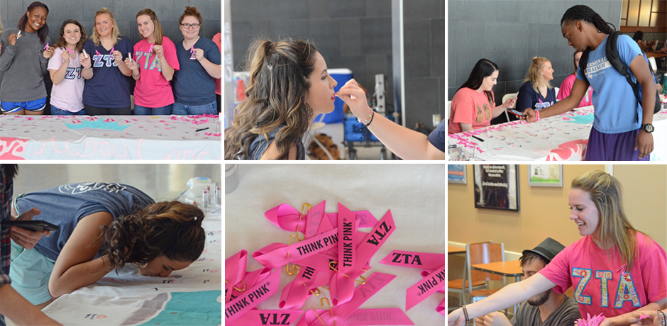 “Think Pink” ribbons were passed out by Zeta Tau Alpha sorority.