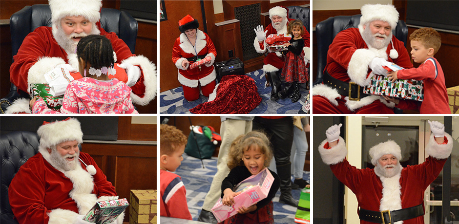 With the help of Santa (aka Rich Kershaw, director of MTSU Student Programming), the University supplied gifts to 43 “Little Raiders” and a great night of fun and fellowship for their families, which included MTSU students and some local residents who are being assisted by the local Domestic Violence and Sexual Assault Program.