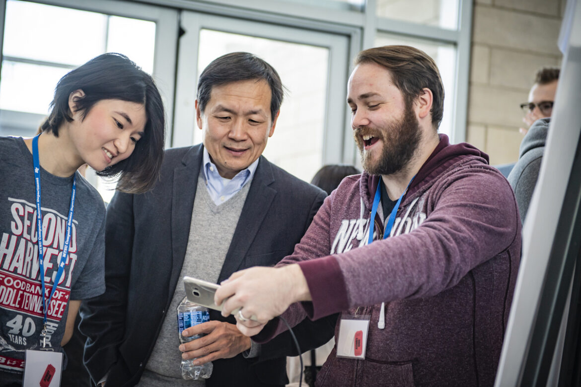 Twenty teams and more than 200 students that MTSU President Sidney A. McPhee called “really brilliant kids” completed projects in the 36-hour hackathon, which gathers software developers, visual designers, programmers and computer science/computer information systems students from universities to form teams to invent new web platforms, mobile apps and electronic gadgets.