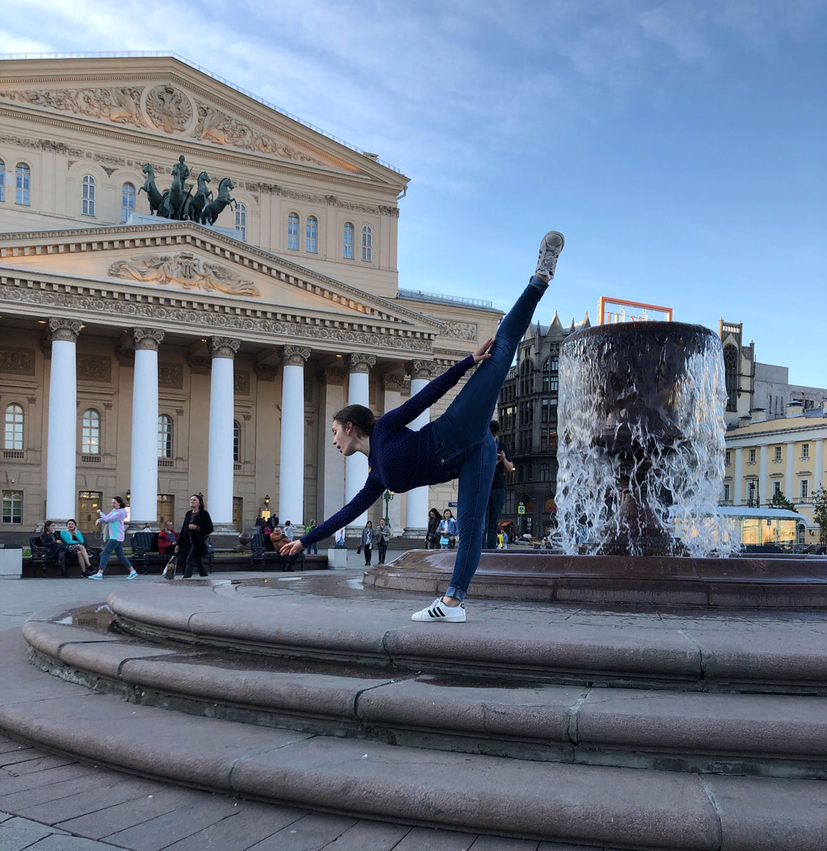 - MTSU dance student Savannah Cook performs in a Moscow pavilion during a study-abroad trip. (Photo submitted)