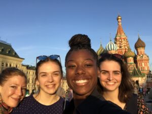 Sometimes this embodied research takes place in MTSU’s own dance studios, under the practiced eye of faculty such as Brooker. Other times, the dancers’ embodied research takes place a little farther from home. This spring, for instance, three MTSU students seized a once-in-a-lifetime performance opportunity in Russia.