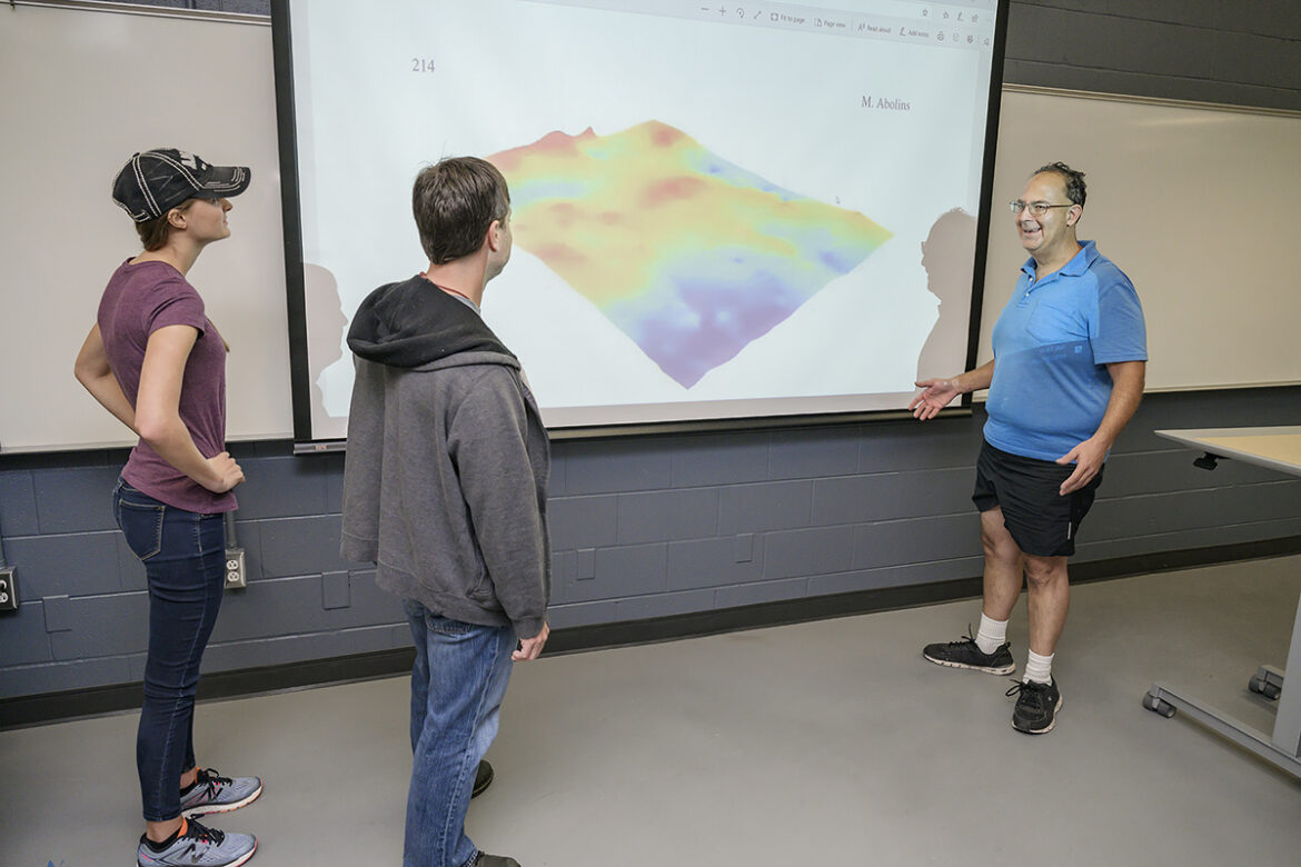 MTSU geosciences professor Mark Abolins’ structural geology class with 11 students is an MT Engage course to foster a culture of engaged learning. The students will benefit from the Petex Move Suite software. (MTSU photo by Andy Heidt)