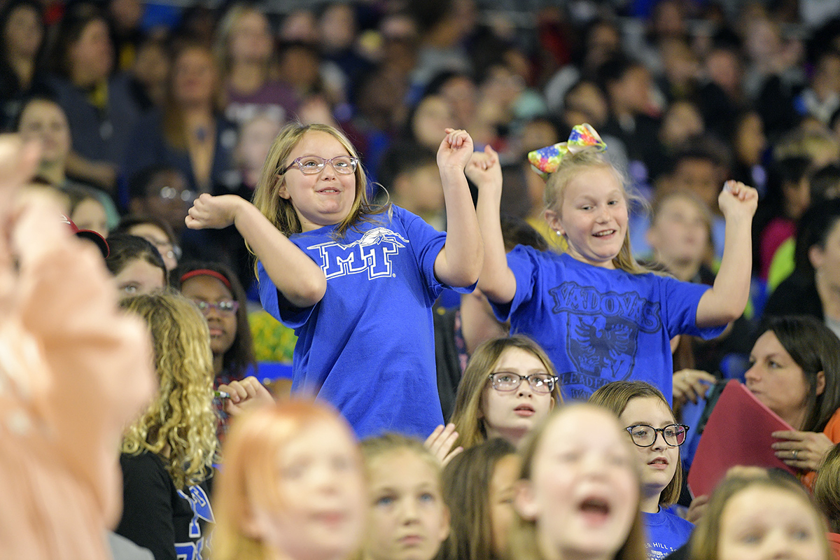 “It was exciting to see and hear thousands of Rutherford County Schools’ students cheering on the Blue Raiders,” MTSU President Sidney A. McPhee said. “For many of them, it was their first time to be on a university campus and to watch a college basketball in a facility the size of Murphy Center. We always enjoy their visit and look forward to them returning.”