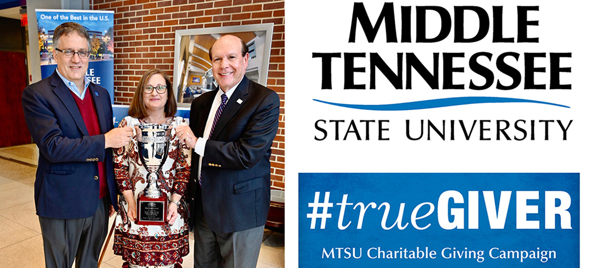 MTSU’s annual Charitable Giving Campaign is a monthlong effort by faculty and staff to support worthy causes. The campaign is fueled largely by monthly payroll deductions from employees over the next year but also allows one-time, lump-sum gifts at the donor’s discretion.