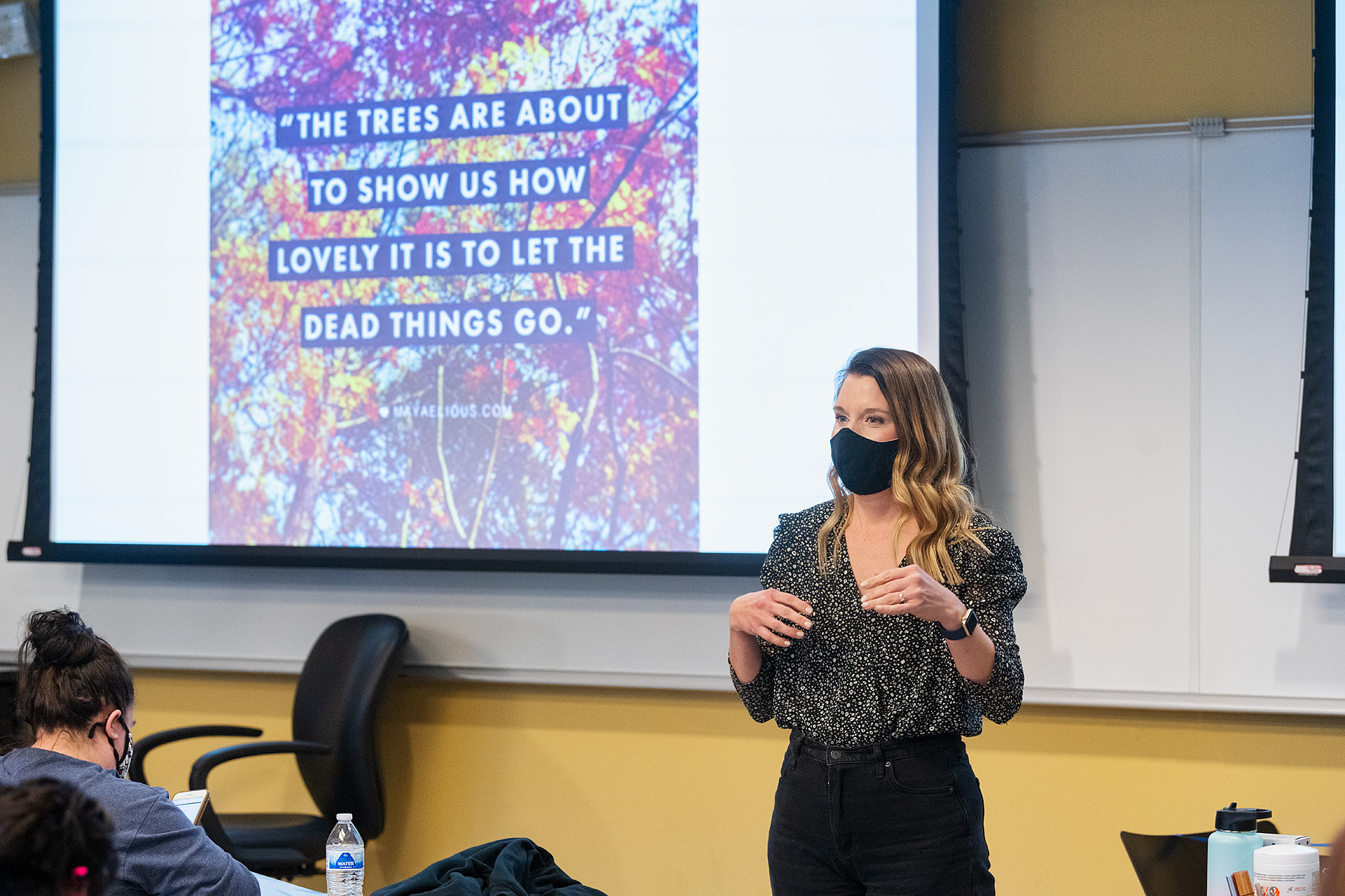 - Katie Schrodt, Elementary & Special Education faculty, teaching in the College of Education Building. (Photo: Andy Heidt)