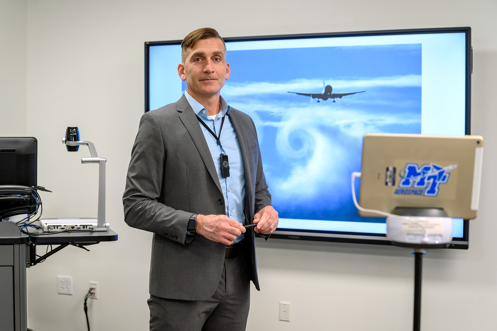 All along, he assisted greatly in ensuring the technology capabilities at the airport (the Aerospace Mobile Classroom and a separate classroom at the new Murfreesboro Municipal Airport terminal) continued to work, plus training other faculty on this equipment.