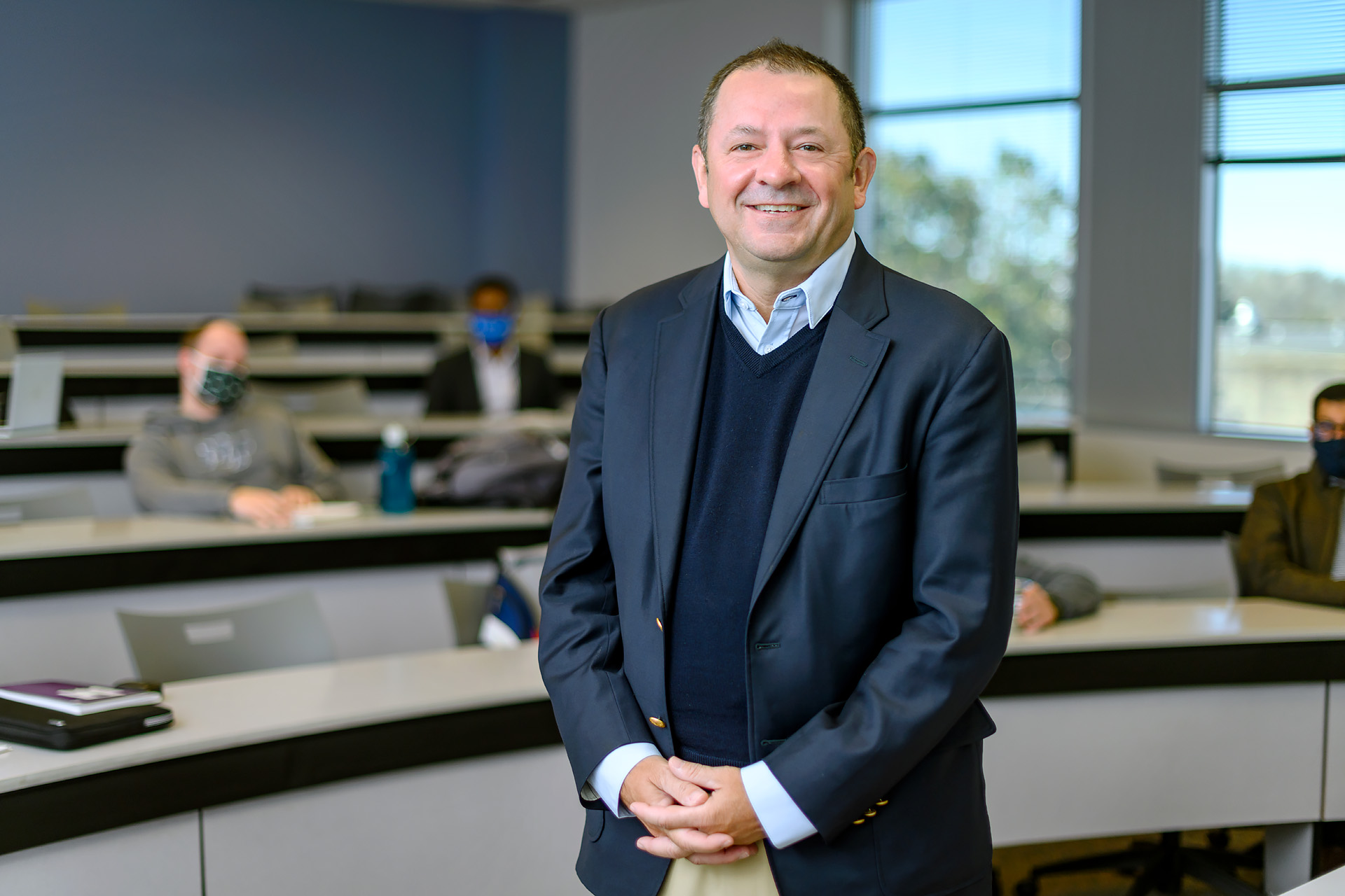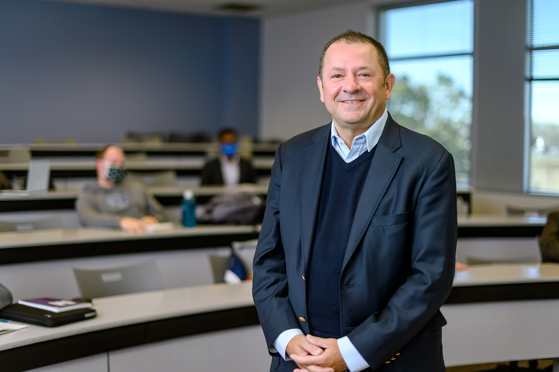- Faculty profile for Stuart Fowler, Economics & Finance in the Jones College of Business in his BAS classroom. (Photo: J. Intintoli)