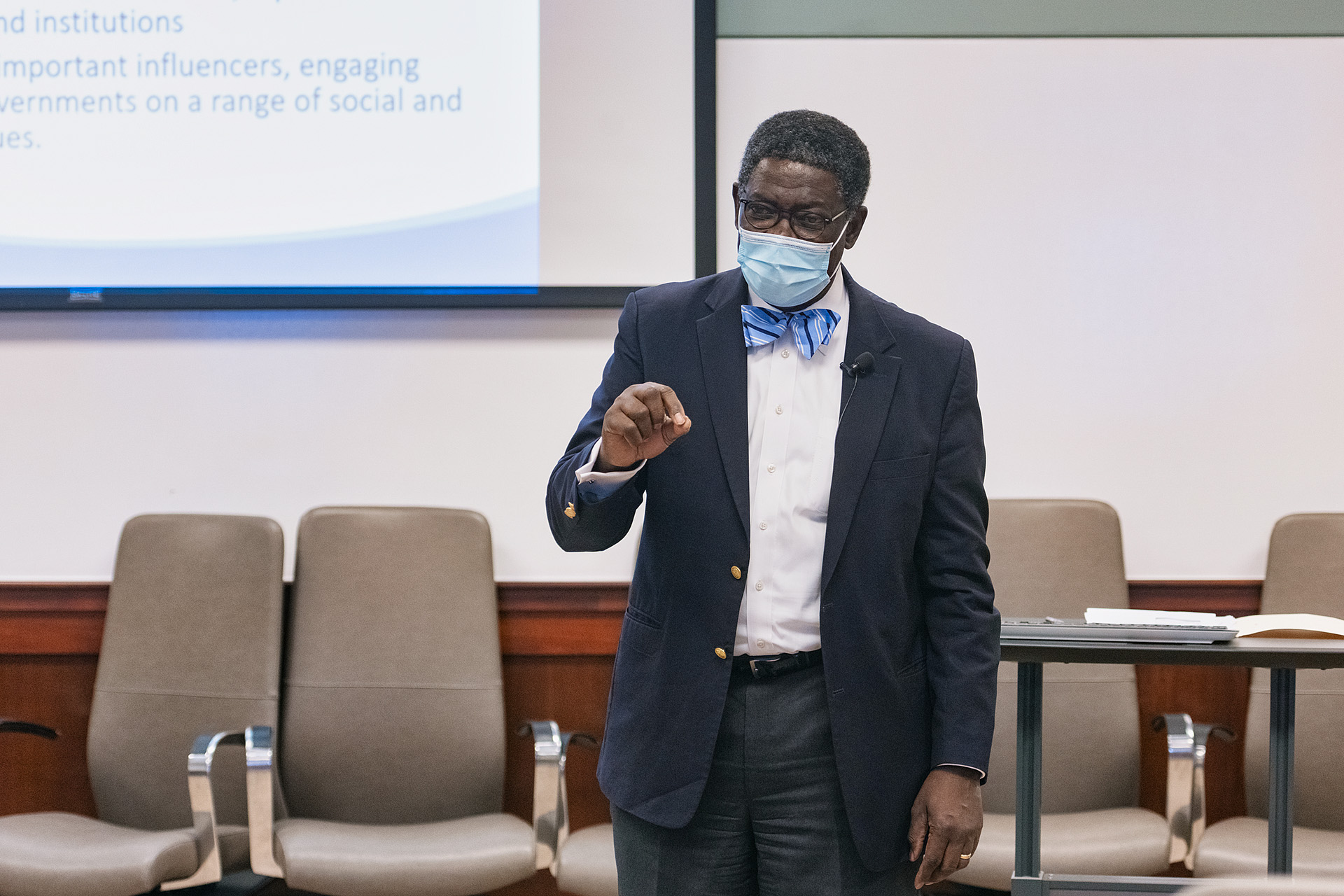 Sokoya smiled when recalling a classroom safety protocol that struck him somewhat humorous. “While I knew it was necessary and a good thing, taking wet wipes to a graduate class to wipe hands and desks reminded me of what first graders have to do,” he said with a chuckle. “My students were good about it.”
