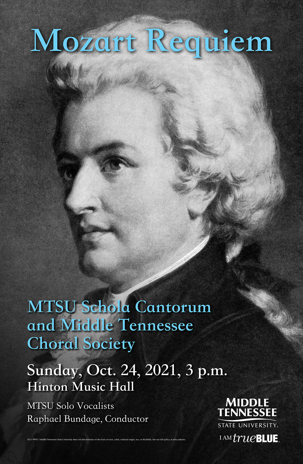 Middle Tennessee State University vocal students will be in the spotlight Sunday, Oct. 24, when the MTSU Schola Cantorum and Middle Tennessee Choral Society blend their voices in a special performance of Mozart’s haunting final work, “Requiem.”