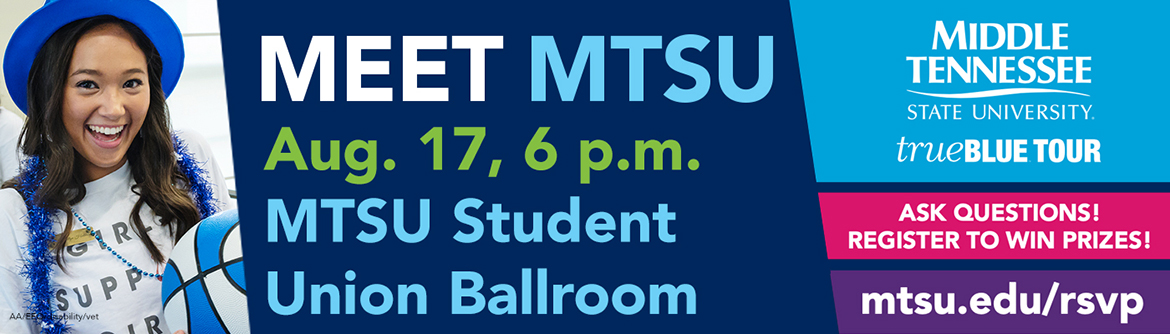 Sells said MTSU’s “delighted to be taking many remarkable faculty and administrators on the road again this year to meet with prospective students and their families. The True Blue Tour is the very best opportunity to meet locally with academic advisors, admissions and financial aid reps, and other departments to discuss whether MTSU might be your best fit for a college education.”