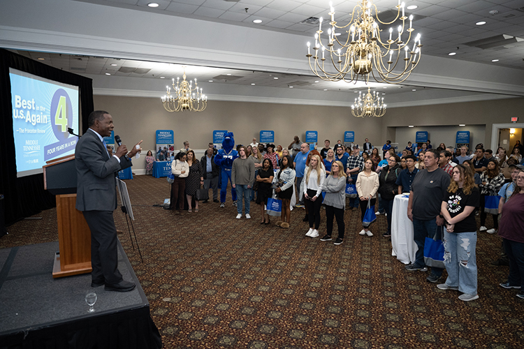 The tour’s next step is Birmingham, Alabama, on Tuesday, Oct. 11, at the Birmingham Marriot at 3590 Grandview Parkway. Those interested in attending are encouraged to RSVP at https://www.mtsu.edu/rsvp but can also register the day of on-site to enter the giveaways for scholarships and prizes conducted by McPhee at every event.