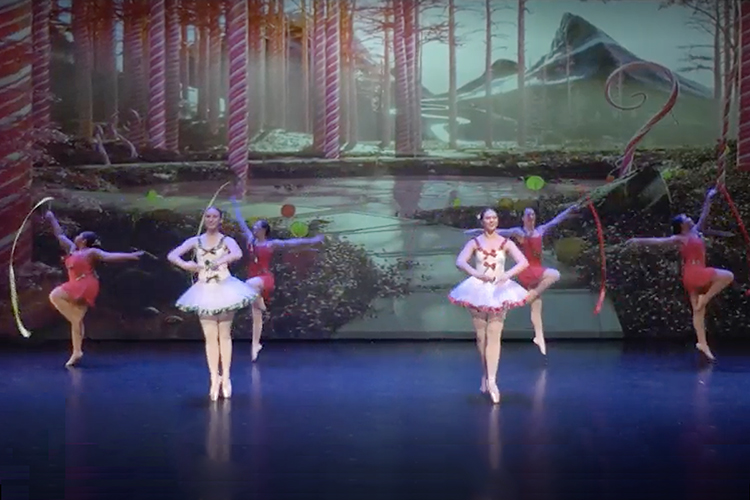 • MTSU Dance Program students performing “Whimsical Candy Cane Swirls,” a piece choreographed by assistant professor and program director Jade Treadwell from “The Nutcracker” ballet, focusing on the Russian “candy cane” dancers.