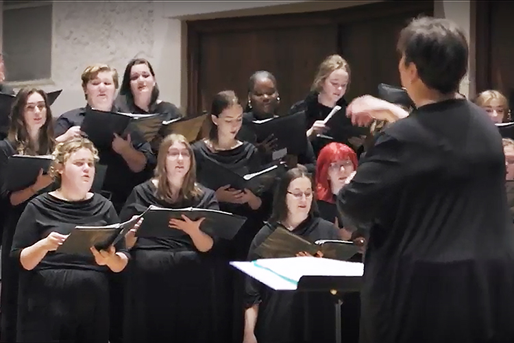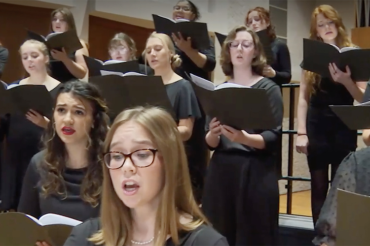 • An arrangement of “The Christmas Song” by the SOAL, or Soprano/Alto, Chorale, featuring MTSU alumna and jazz studies graduate student Julia Rich as guest soloist and senior music industry major Noah Huseman on piano. School of Music instructor and chorales director Angela Tipps directs the SOAL Chorale in this performance.