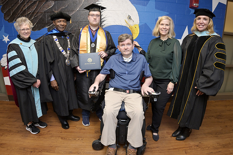 “We’re excited they contacted us when they had a special need for graduation and that they are willing to share their story, so that others know that if they have a nontraditional need, they can contact the Daniels Center to clear the way,” said Miller, who provided a double chocolate cake for the special occasion.