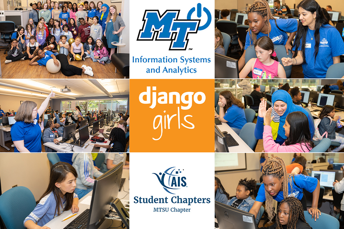 Django Girls Murfreesboro is organized by MTSU information systems assistant professors Michael Erskine and Stephanie Totty and information systems major and AIS Student Chapter President Rebecca Jones of Kingsport, Tennessee, with the support of the AIS student chapter, Department of Information System and Analytics and Jones College of Business.