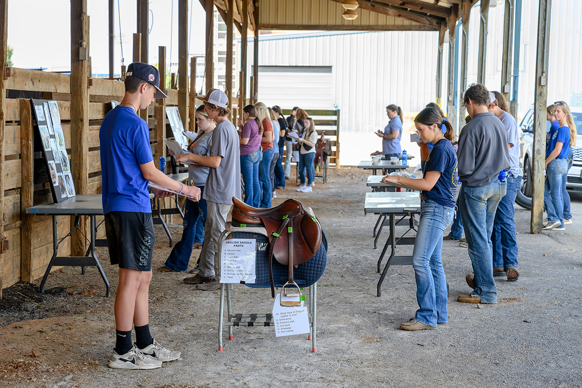 In the horse judging skills assessment competition with several dozen of her peers, Houser — dressed in a blue-and-red paisley shirt, cowgirl hat, designer boots and jeans — said she was “really enjoying my time on campus and excited to learn the correct way to evaluate the discipline.”