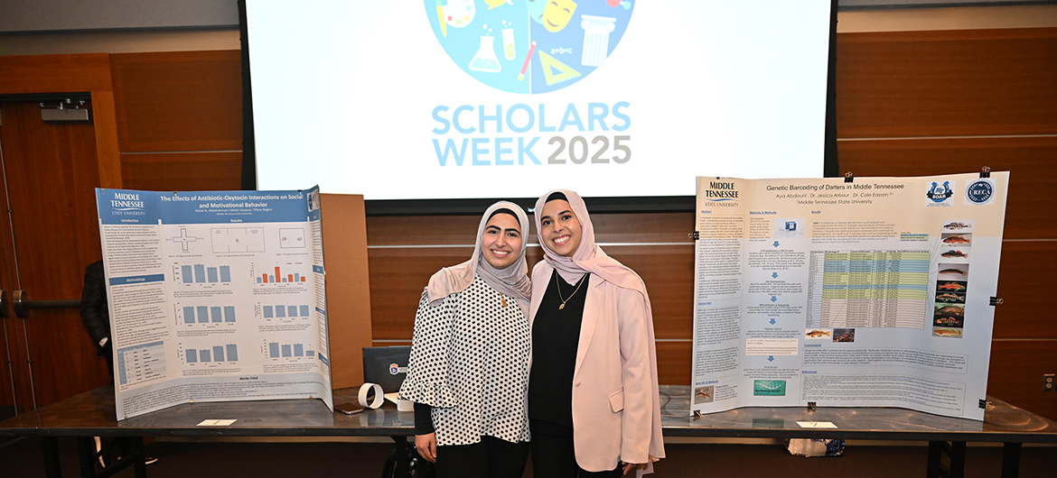 Judges awarded first- ($150), second- ($100) and third-place ($50) awards in undergraduate and graduate categories in six of the academic colleges. Winners were announced on the Scholars Week website, https://www.mtsu.edu/scholarsweek/.