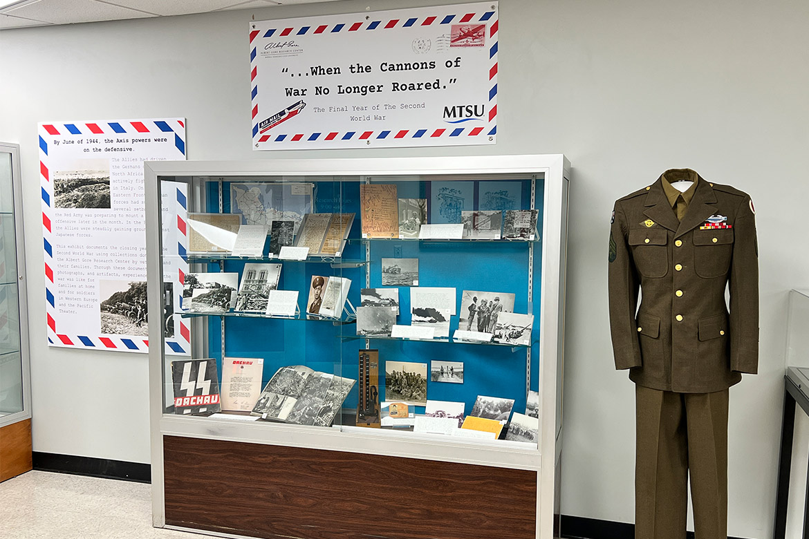 MURFREESBORO, Tenn. — Middle Tennessee State University’s Albert Gore Research Center is marking the 80th anniversary of the end of World War II with a new exhibit that looks at the conflict’s worldwide reach and its effect on families in Middle Tennessee.