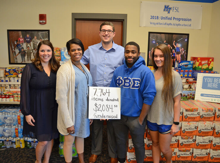 Campus Community MTSU Greek Week food drive nets 7,700-plus items, $2K for Student Food Pantry [+VIDEO] by Jimmy W. Hart April 25 2019 SHARE Facebook Twitter Pinterest MTSU’s Student Food Pantry received a significant helping hand in replenishing its stock this week thanks to a friendly competition among the university’s fraternities and.. Read More →