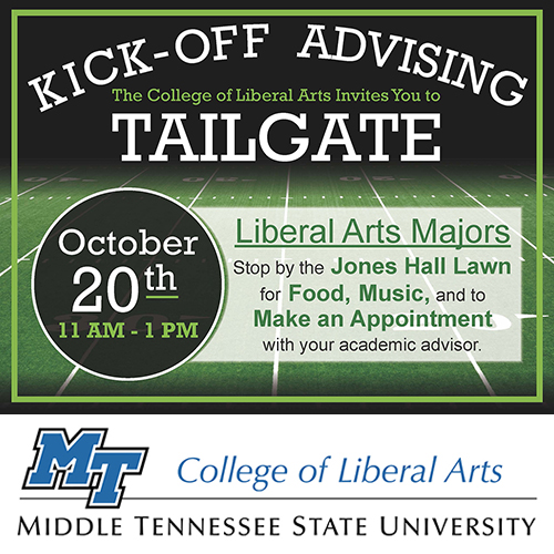 MTSU students majoring in the College of Liberal Arts’ 10 academic departments can meet, greet and eat during a special tailgate event set Thursday, Oct...