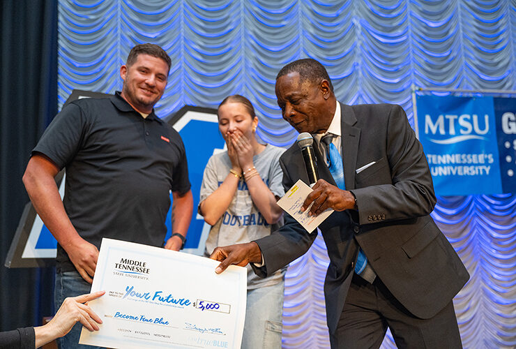 Crowd anticipation was palpable at Monday’s True Blue Tour in Franklin, Tennessee, as University President Sidney A. McPhee paused before announcing the final scholarship he would award..