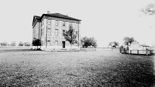 Murfreesboro’s Union University is shown on the site of what is now Central Magnet School in an undated photo. The facility opened in 1848, was badly damaged during the Civil War and reopened in 1868, then closed in 1878 after a cholera epidemic. The building to the far right is the home of Joseph Eaton, the first president of Union University, who died in 1859. (photo courtesy of the Albert Gore Research Center)