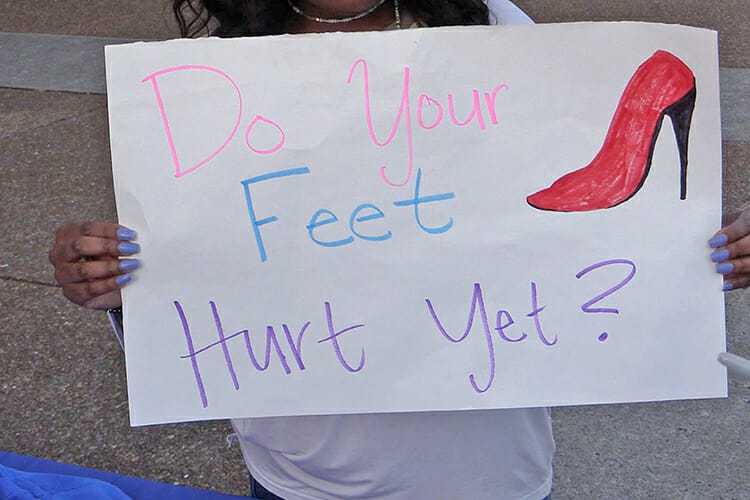 “Walk a Mile” is billed as “the international men’s march to stop rape, assault and gender violence,” according to www.walkamileinhershoes.org. Men are required to walk one mile in women’s high-heeled shoes as a light-hearted way to spark a conversation about men’s sexualized violence against women.