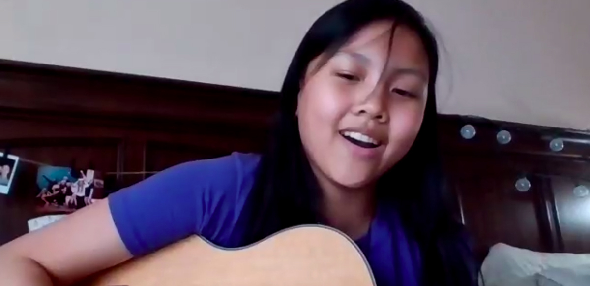 MTSU freshman Arianne Dayrit of Old Hickory, Tenn., sings and plays guitar in this screenshot from the virtual Scholars Academy Freshman Summer Institute talent show in mid-August. She graduated from Pope John Paul II High School in May. (Photo via MTSU Scholars Academy)