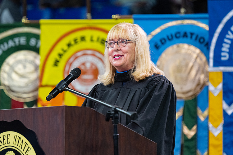 “It’s difficult to imagine and impossible to predict what is to come. … What will you do to stay up to speed as your world develops? What will you do to lead in innovation in science, economics, medicine, entertainment, politics, social and societal reform? I encourage you to be an active participant and not sit on the sideline. Take the inquisitive nature that has been encouraged in you in your time at MTSU to make some difference.”