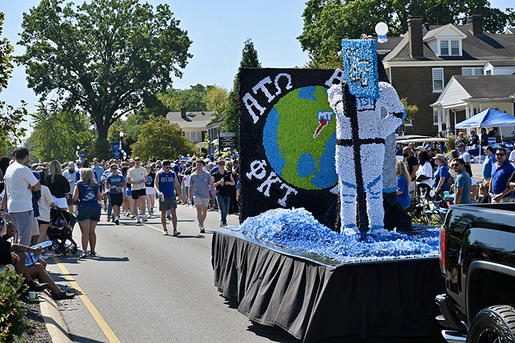 Beth Dye, Alumni Relations assistant director, said more than 70 parade floats and participants were part of the parade, which drew hundreds of parade watchers along East Main Street and Middle Tennessee Boulevard. The Mixer on Middle featured commentary from Chip Walters (’85), voice of the Blue Raiders, and alumna Heather Mathis (’11), cohost of NewsChannel 5’s “Talk of the Town.”