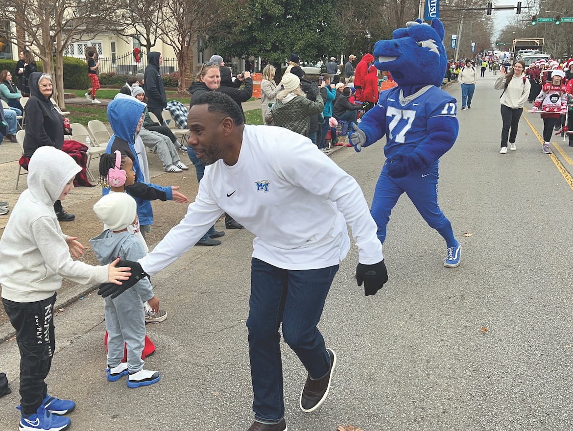 The head coach ditched his heavy coat and hopped out of the truck, running side to side to shake hands with those out in the community. They are, after all, the people that Mason will need to bring the Blue Raiders success on the gridiron, even more than the student-athletes he’ll mentor or the coaches he’ll hire.