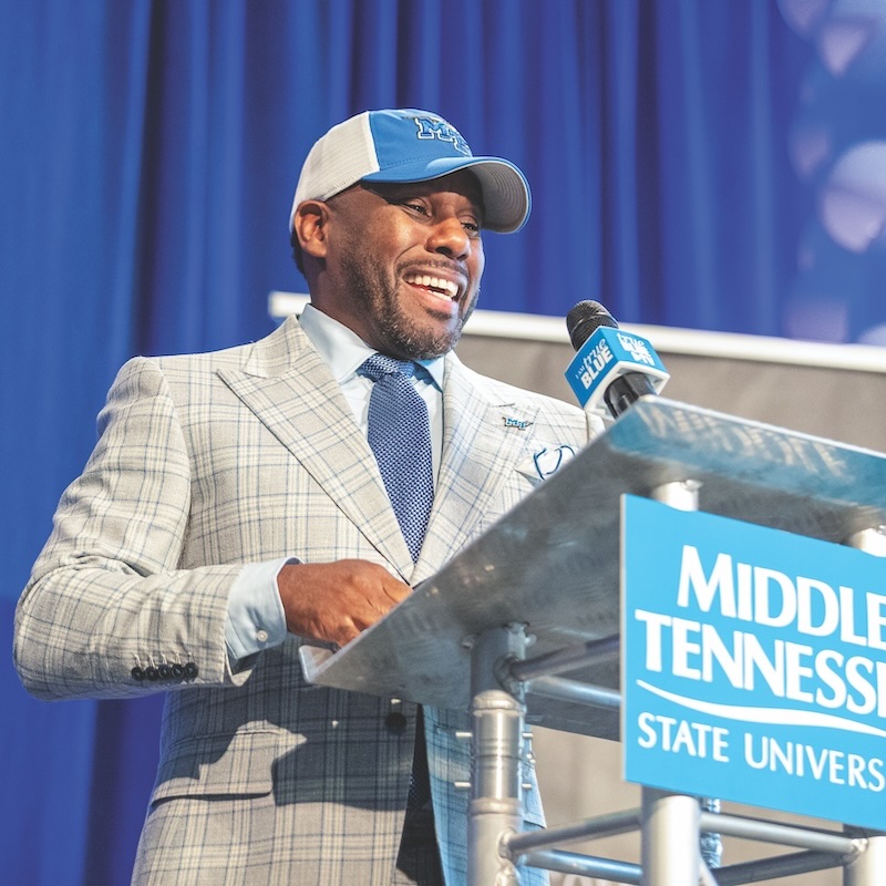 Just days before, MTSU had rolled out the blue carpet to introduce Mason as only the third head coach in the program’s Football Bowl Subdivision (formerly Division I-A) era and fourth in the past 44 years. After 29 years of coaching and a one-year sabbatical from the sidelines as a TV analyst, Mason brings a blue-collar work ethic to a program that he said has “good bones” and a fertile recruiting ground to build championships.