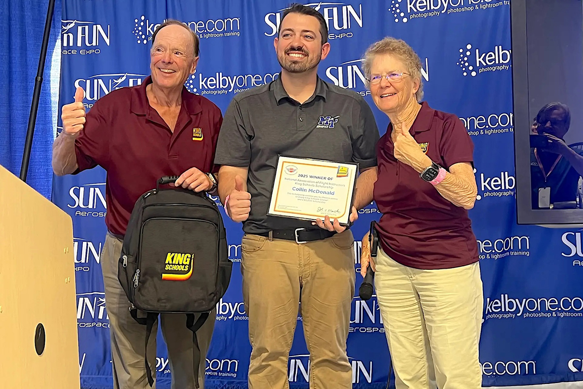 Now, McDonald’s the 2025 recipient of the King Schools/National Association of Flight Instructors Flight Scholarship, presented at this year’s Sun ’n Fun Aerospace Expo in Lakeland, Florida, recently, providing him with $5,000 to further his flight instructor training, lifetime access to King Schools’ extensive course library (a $15,000 value) and lifetime access to Flight Instructor Refresher Courses.