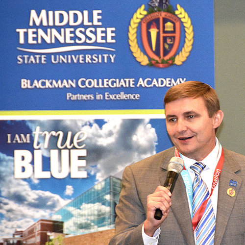 NASHVILLE, Tenn. — The partnership between Blackman High School in Murfreesboro and Middle Tennessee State University in the creation of the Blackman Collegiate Academy was highlighted..