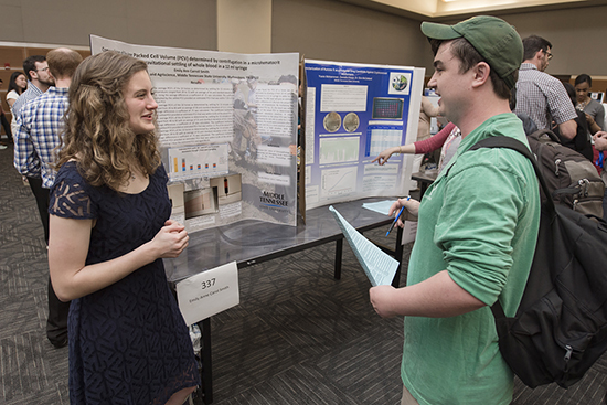 Several hundred MTSU students and faculty wrapped up the annual Scholars Week Friday, April 1, with performances and 200 poster presentations in the Student Union..