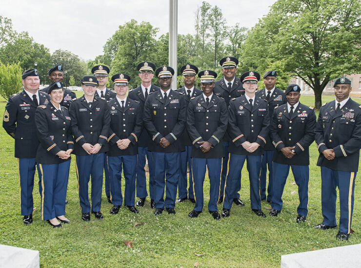 Nineteen MTSU seniors awaiting graduation were commissioned as U.S. Army second lieutenants Friday, May 3, during a formal ceremony in the Veterans Memorial outside the Tom..