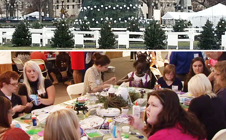 MTSU speech and organizational communications students helped 24 young artists from across the state create ornaments Oct. 21 for Tennessee’s 2013 national Christmas tree in..