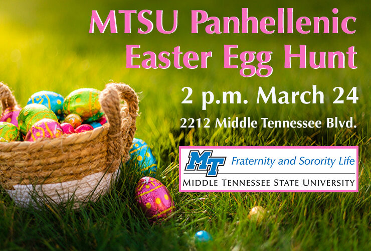 Special Events Hop over to MTSU for the Panhellenic Easter Egg Hunt on March 24 by Nancy DeGennaro March 19 2024 SHARE Facebook Twitter Pinterest Grab your baskets and hop on over to Middle Tennessee State University this weekend for the annual Panhellenic Easter Egg Hunt... Read More →