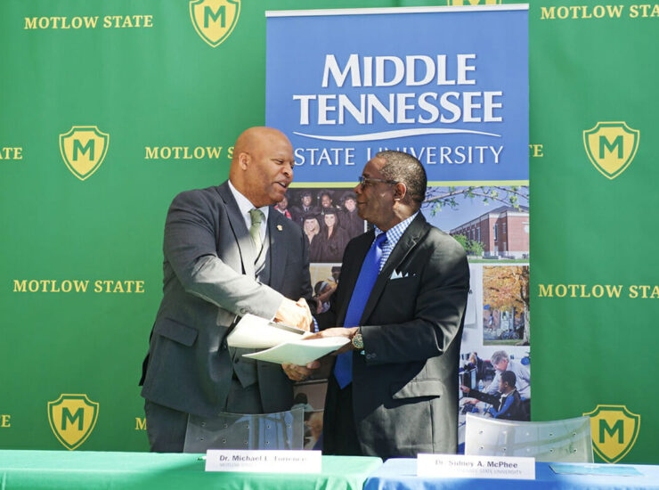 SMYRNA, Tenn. — The presidents of Motlow State Community College and Middle Tennessee State University signed an agreement Tuesday, May 1, that highlights the pathways for Motlow students..