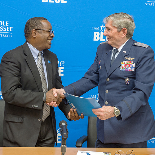 MTSU and the Civil Air Patrol’s Tennessee Wing have agreed to partner in aerospace education for state high school students in the U.S. Air Force..