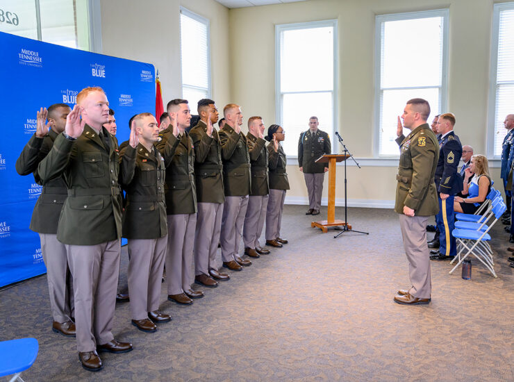 U.S. Army Lt. Col. Carrick McCarthy recently administered the Army Oath to five graduating MTSU senior cadets, who were commissioned as second lieutenants and soon begin new careers..