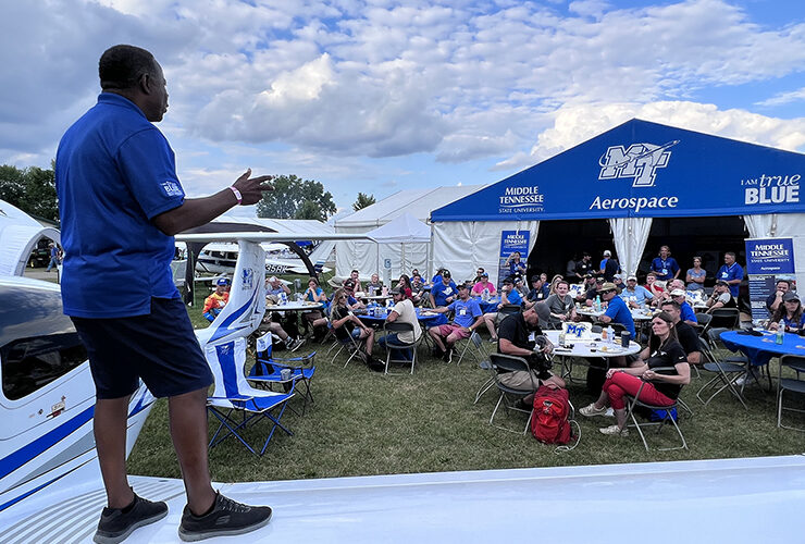 OSHKOSH, Wis. — Middle Tennessee State University’s Department of Aerospace welcomed more than 100 alumni and supporters at EAA AirVenture in Wisconsin who came to learn..