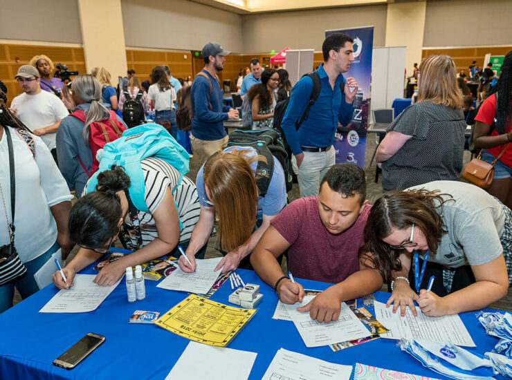 A new location meant a new energy at MTSU’s recent Fall Career Fair, as hundreds of students and alumni descended on the Campus Recreation Center’s basketball courts..